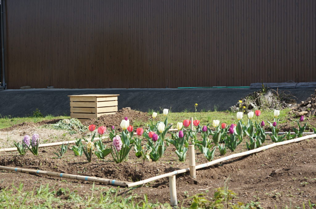 チューリップの球根を植えたのが1月で、4月になるとまずまずのチューリップ畑になりました。